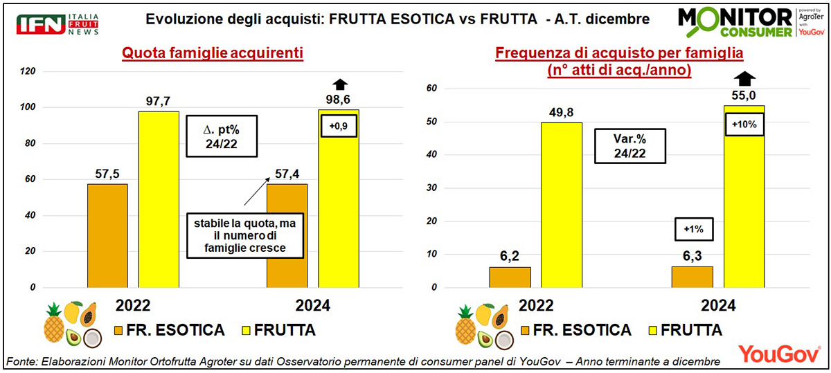 Quota di famiglie acquirenti e frequenza di acquisto costanti per la frutta esotica