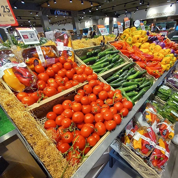 Più in generale, nei reparti sono in bella vista meloni, angurie e drupacee che hanno gli spazi più significativi, che di solito affiancano o sostituiscono in toto l'uguale prestazione di origine nazionale. Lo stesso accade nelle verdure, con zucchine, insalate, cavoli e porri.