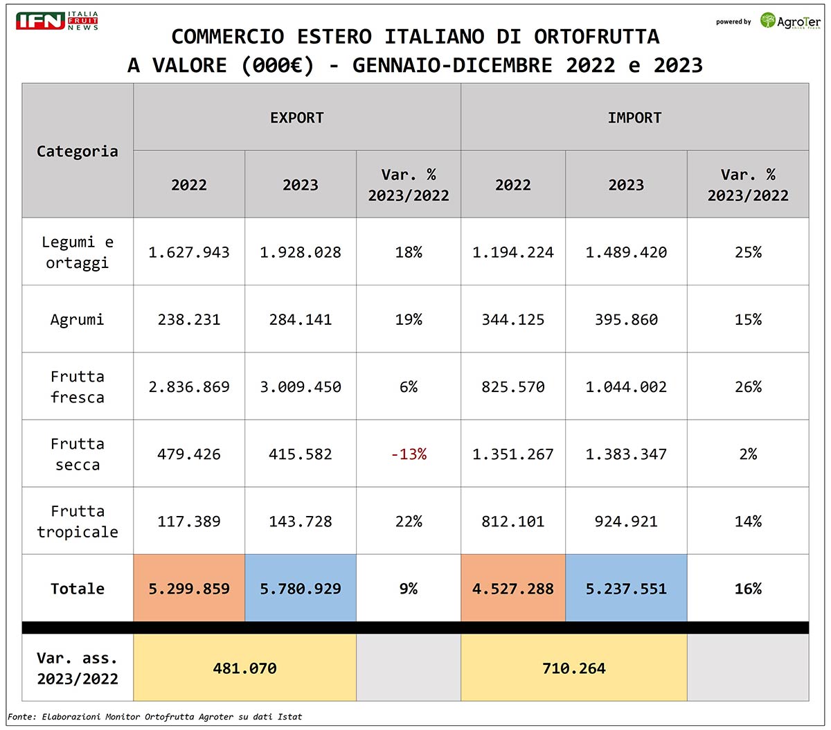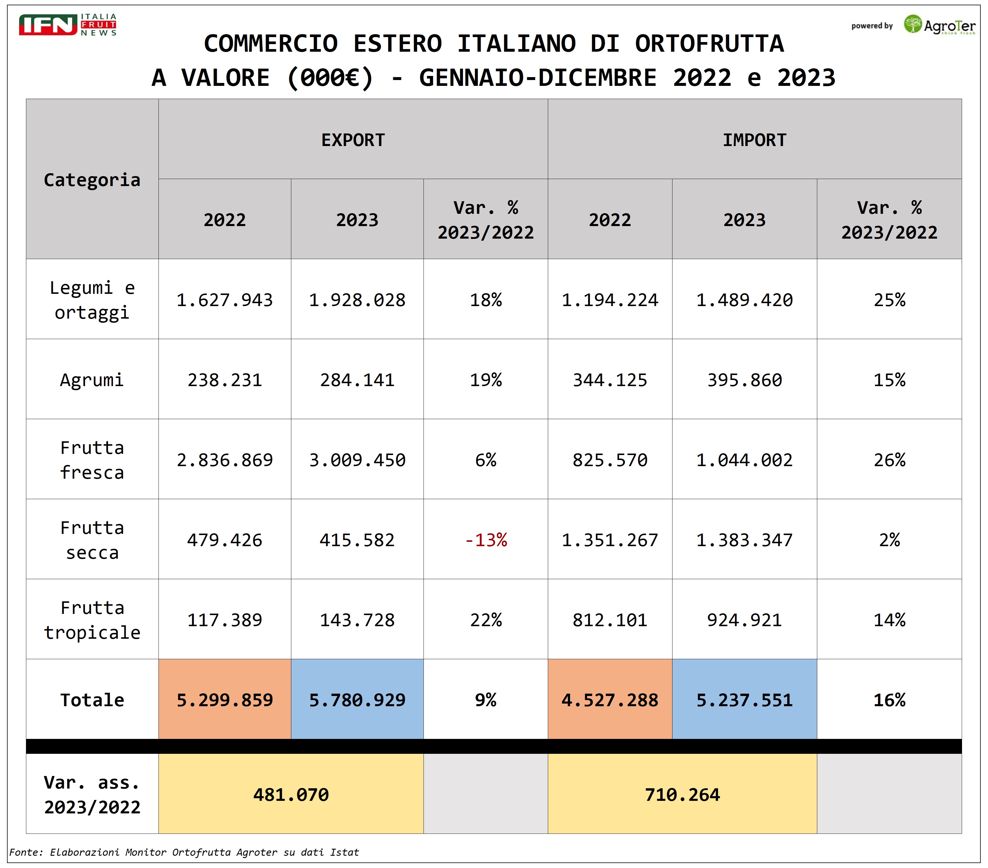 Import 2023 di ortofrutta: l'italia è terra di conquista
