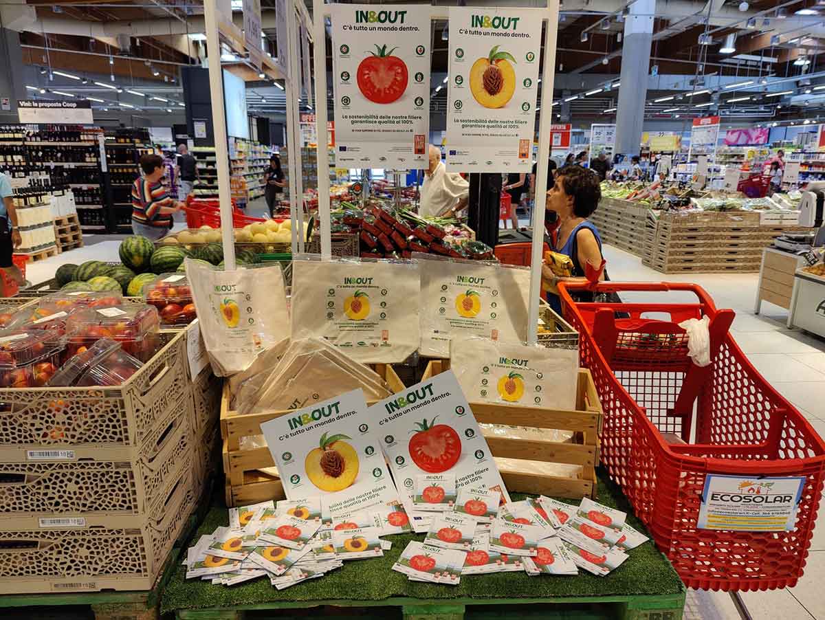 Sono tre le catene della grande distribuzione interessate in Italia: i consumatori che accederanno ai 140 punti vendita delle cooperative del gruppo COOP, del Gruppo Arena e Despar potranno trovare corner con materiale informativo sul progetto, sulle caratteristiche nutrizionali e sulla sostenibilità dell’ortofrutta Europea e l’iconico gadget della campagna, una simpatica ed ecologica shopper in cotone, perfetta sintesi di quella sostenibilità e di quell’attenzione all’ambiente di cui In&Out si fa testimone.