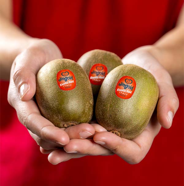 Jingold con Exotic Red è leader del kiwi a polpa rossa sul mercato europeo. Si tratta di un frutto innovativo che eccelle per dolcezza, gusto, sapore e shelf life. I metodi di coltivazione sostenibili e le tecniche agronomiche più avanzate messe a punto su questa varietà permettono oggi di avere un kiwi dalle caratteristiche organolettiche straordinarie, di calibro sostenuto e con una lunga vita di scaffale, che permette al prodotto di aprire la campagna in anticipo rispetto alle tipologie a polpa gialla e verde e di essere sui banchi fino a marzo.
