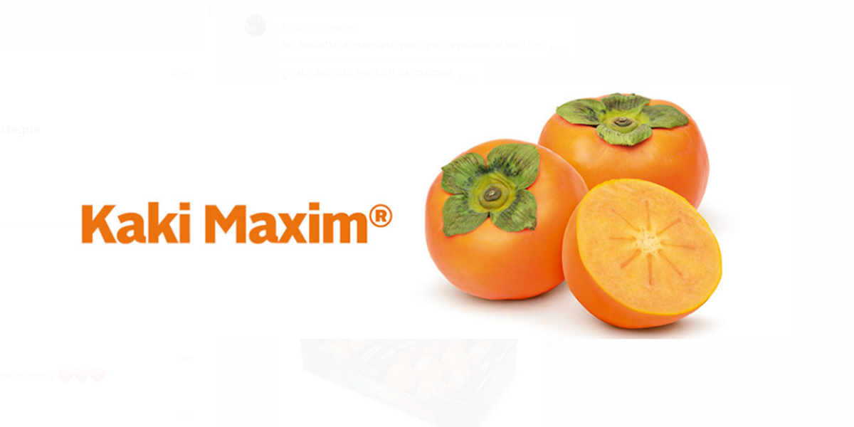 La varietà, del gruppo Genesis Exotic, è brevettata e con un numero di ettari limitati per il territorio Italiano, disponibili attraverso la Commercial Gallo concessionaria unica per il nostro paese e vede Apofruit come principale interlocutore a livello produttivo: “È già da qualche anno che osserviamo con interesse Maxim® che ha la peculiarità di non dover essere detannizzato per essere idoneo al consumo, a differenza delle altre varietà di kaki, rendendolo così immediatamente disponibile alla vendita. Per questa campagna disponiamo di circa 3.000 quintali e contiamo nei prossimi anni di aumentare i volumi grazie all’entrata in produzione degli impianti già messi a dimora, oltre alla superficie che verrà investita dai nostri soci situati sia a Nord che a Sud della Penisola”.