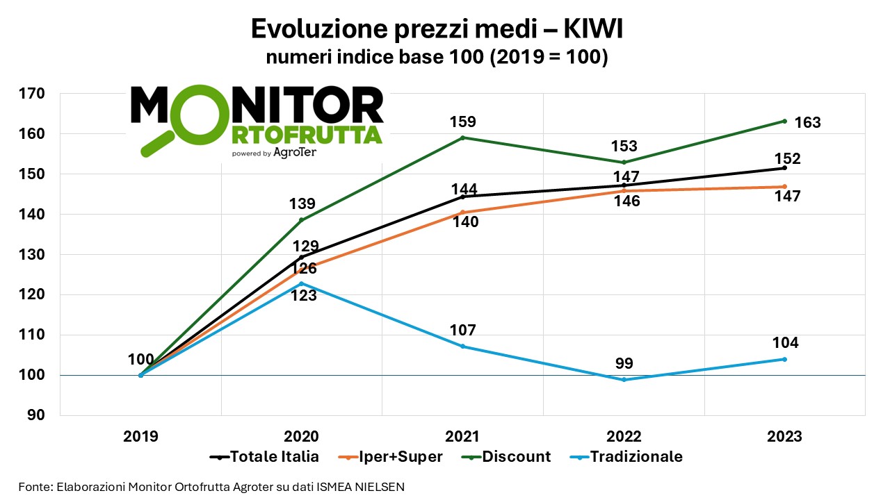 Consumi in calo (-10% in 5 anni), prezzi in forte aumento (+52% fra 2019-23), tipologia a polpa gialla che non guadagna quote a punto vendita e cresce anche a livello produttivo a discapito del verde, penalizzato a sua volta da rese in calo - a causa di motivi ambientali e patologici – e dalla concorrenza della Grecia. Questa è solo una piccola sintesi di quanto emerso durante la diretta sul kiwi, andata in onda ieri mattina sui nostri canali social (clicca qui per rivederla).