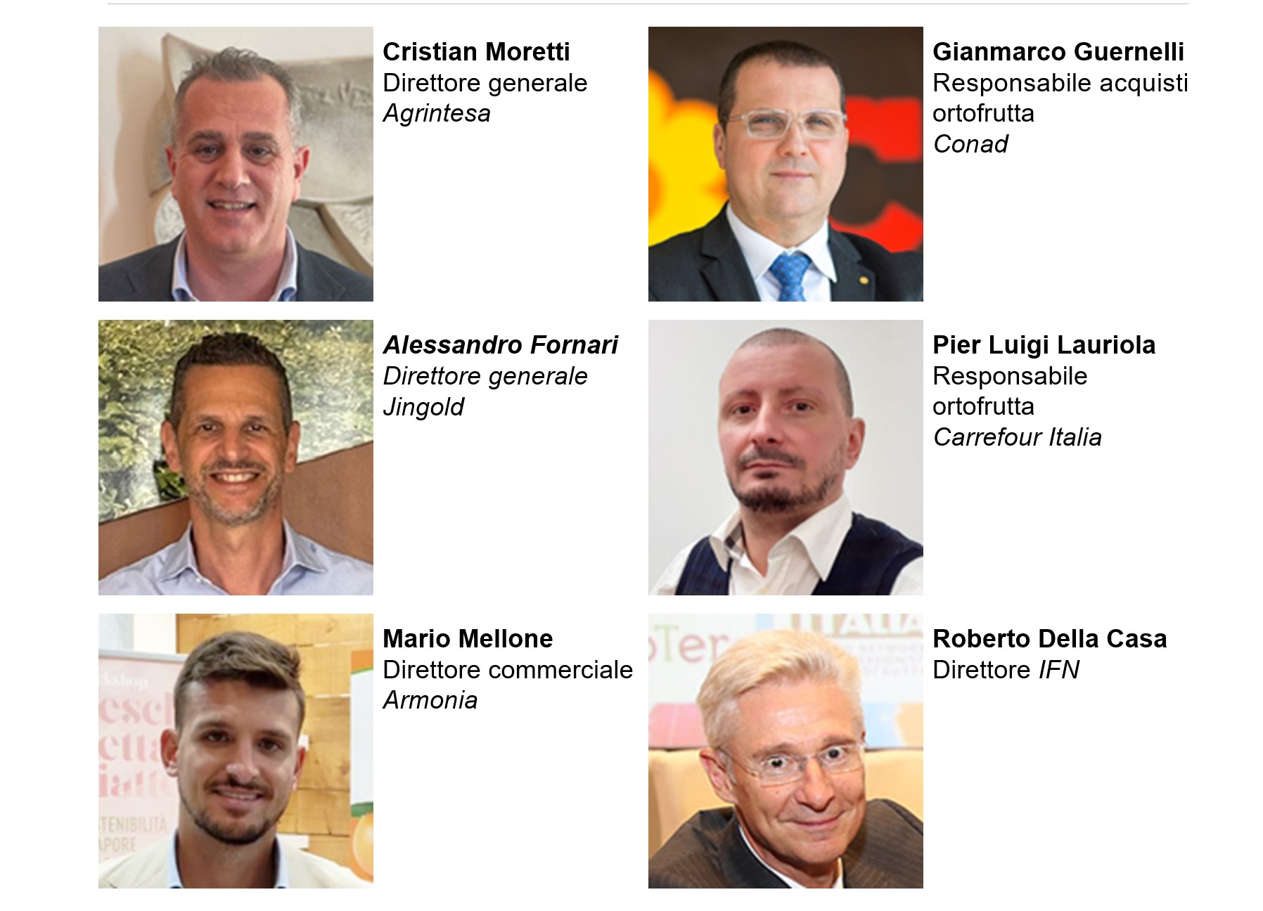 Il dibattito sarà animato da protagonisti di riferimento della produzione, come Cristian Moretti, Direttore Generale Agrintesa; Alessandro Fornari, Direttore Generale Jingold e Mario Mellone, Direttore Commerciale Armonia. Per il sistema distributivo, saranno affiancati da Gianmarco Guernelli, Responsabile acquisti ortofrutta Conad e Pier Luigi Lauriola, Responsabile ortofrutta Carrefour Italia.