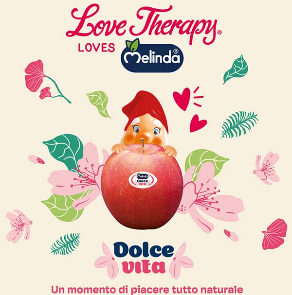 “La mela è sempre stata nel nostro immaginario un emblema di dolcezza e bontà. Il mondo bucolico di Love Therapy si sposa perfettamente con Dolcevita di Melinda”, spiega Floria Fiorucci, Ceo presso Love Therapy.