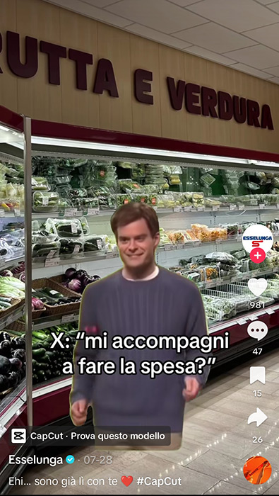 Esselunga ha una pagina ricca di contenuti e anche di follower, sfiorano difatti i 114 mila. Alla sua platea comunica in modo leggero e divertente, senza mai perdere di vista lo storytelling e i valori del brand. Spesso ricorre all’utilizzo di meme e anche a video POV, Point Of View (punto di vista, ndr), molto in voga tra i giovani, per raccontare il contenuto da una certa prospettiva.