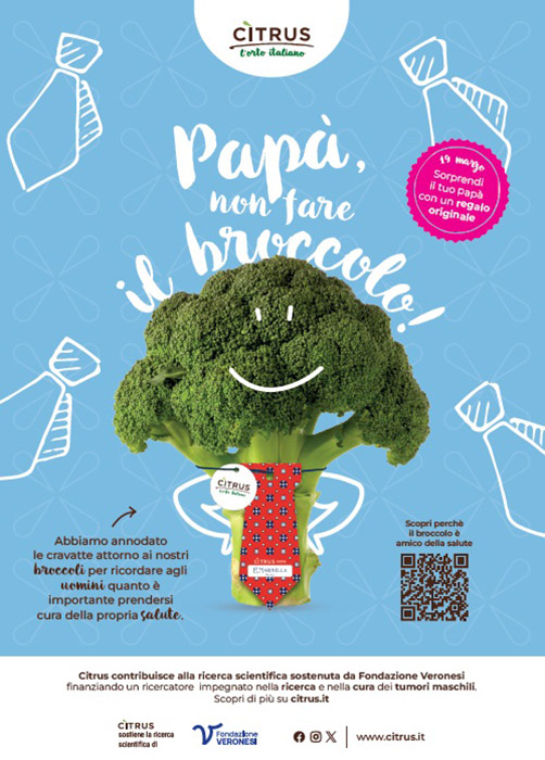 “L’iniziativa – spiega Marianna Palella, Ceo di Citrus L’Orto Italiano - propone il broccolo come regalo da fare ai propri papà, oltre a portare in tavola un tema importante come quello della prevenzione. Il progetto infatti, è pensato per dimostrare affetto ai papà e ricordare loro che devono prendersi cura della propria salute passando da gesti semplici come mangiar sano e sottoporsi alle visite mediche".