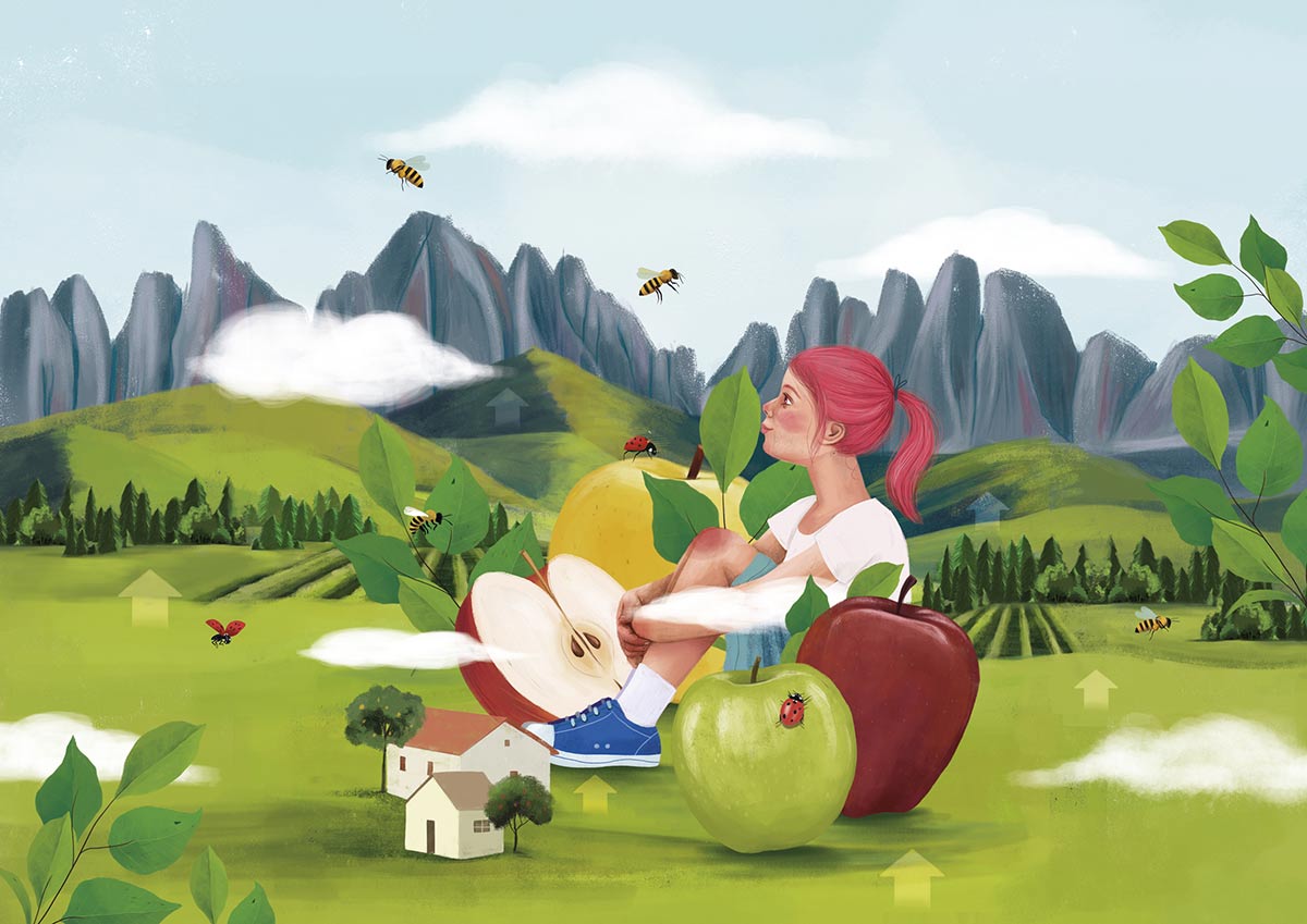 La mela Figlia delle Alpi illustra la custodia del territorio e le stagioni