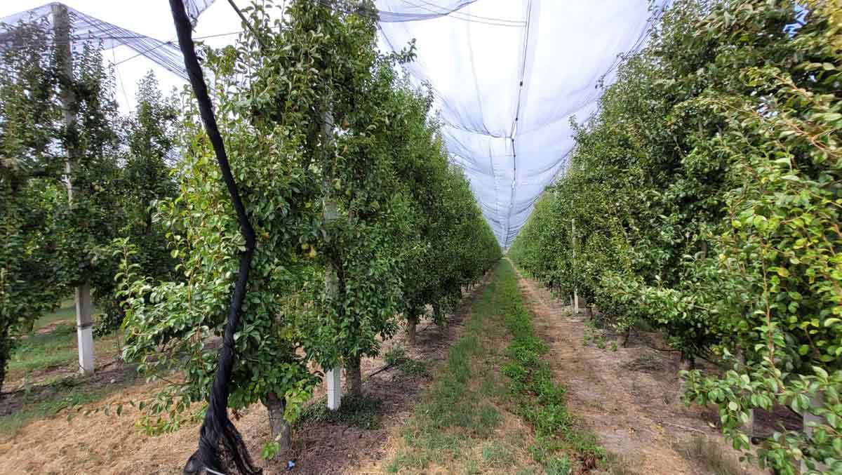 Appena entrati nel pereto si nota la “forza” dei peri che svettano rigogliosi fino a 5 metri di altezza, ed è ancora più interessante come la fruttificazione sia uniforme su tutta la pianta: “È fondamentale gestire la potatura con estrema attenzione, avendo la premura di rinnovare le branchette produttive soprattutto nella parte bassa della pianta. Un’altra pratica, che ritengo sia molto importante per gestire gli eccessi di vigoria, è il taglio ad incisione, alternato alla base del tronco. In questo modo facilitiamo l’equilibrio vegeto-produttivo della pianta. Difatti, raccogliamo in media fra 40-45 tonnellate/ettaro, dei quali l’80% è della classe di calibro 65+”.