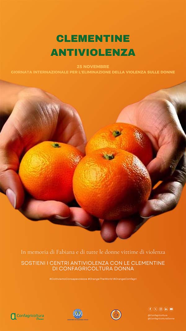“Confagricoltura Donna si impegna ogni giorno per promuovere una cultura inclusiva e per valorizzare l’apporto delle donne all’economia, al lavoro e alla società. La sensibilizzazione verso la parità di genere e l’opposizione totale alla violenza passano anche dall’annullamento del gender gap, per il quale serve l’impegno di tutti” ha dichiarato Alessandra Oddi Baglioni, presidente di Confagricoltura Donna. “Le clementine sono un simbolo importante per il mondo agricolo: ci aiutano a ricordare Fabiana Luzzi, giovane studentessa di Corigliano Calabro, massacrata dall’ex fidanzato, in un agrumeto nella piana di Sibari. Siamo in prima linea per costruire consapevolezza e fermare i femminicidi” ha concluso Oddi Baglioni.