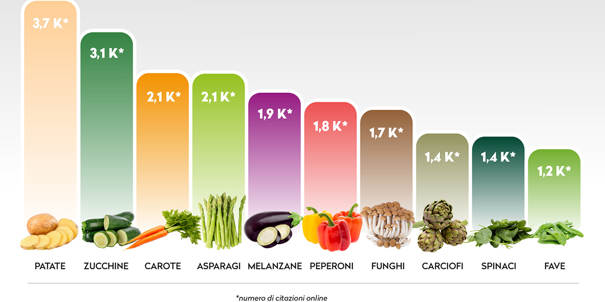 Ben 16mila le conversazioni rilevate che hanno avuto per protagonisti gli ortaggi. Ma quali esattamente? Ad aggiudicarsi il primo posto in classifica sono le patate, un vero e proprio must per gli italiani. Seguono le verdure, ovviamente a partire dalle zucchine, molto gettonate nelle cucine tricolore. Ma ci sono anche piazzamenti che sorprendono un po’, come quello degli asparagi, che superano le amatissime melanzane, o quelle delle fave, che entrano nella top10 pur essendo legumi più tradizionalmente legati a una cucina regionale.