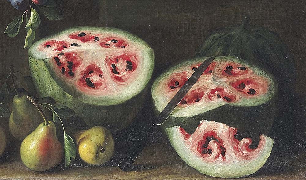 Per capire com’era nel 1600 un’anguria basta visionare un'opera di Giovanni Stanchi, detto anche Dei Fiori, celebre artista italiano conosciuto principalmente per le sue nature morte. In uno dei suoi celebri dipinti – come si legge su Everyeye.it - si vede un’anguria costituita da una parte bianca prevalente in cui torvano spezio diverse sezioni di polpa rossa. Questo dipinto ci induce ad immagine che l’anguria non avesse una polpa omogenea. Chi l’avrebbe mai detto che oggi, addirittura, l’avremmo coltivata anche senza semi.
