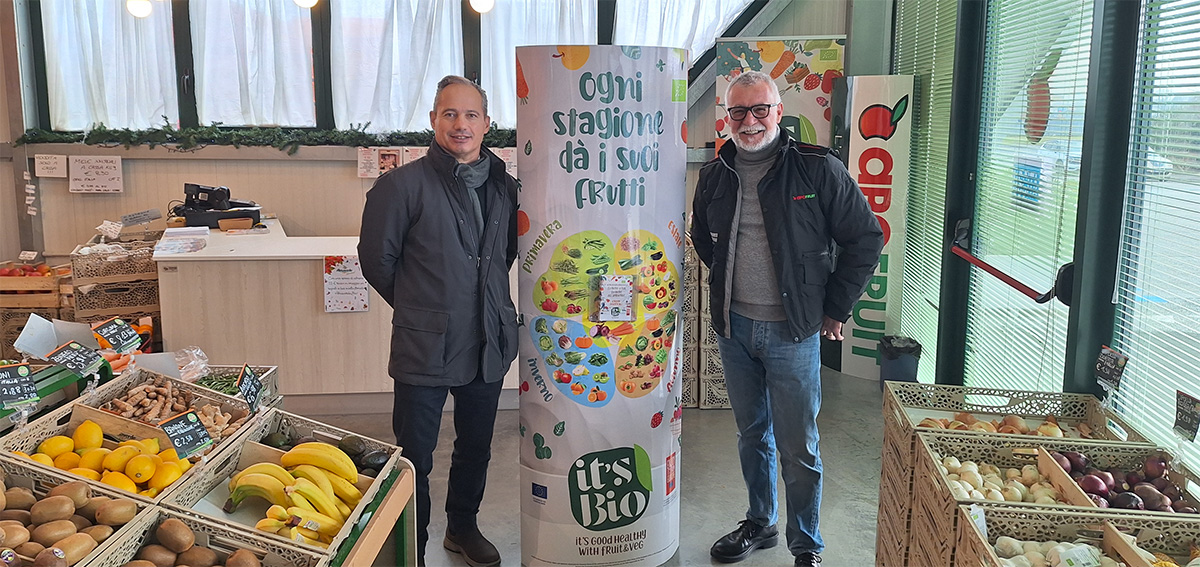 Concetti chiari, illustrati dal manager romagnolo durante l’evento ospitato nel punto vendita Apofruit di Longiano, che ha aperto le porte alla stampa per fare conoscere, per l’appunto, la filiera del biologico nel suo rapporto diretto con il consumatore. L’evento nasce nell’ambito di It’s Bio (It’s good healthy and natural Bio Fruit&Veg), progetto Europeo che promuove in Italia, Belgio e Grecia il metodo di produzione biologica del settore ortofrutticolo, evidenziandone gli aspetti positivi in termini di salubrità dei prodotti e di sostenibilità ambientale delle produzioni. Un progetto, It’s Bio, che ha visto negli ultimi tre anni l’organizzazione di eventi di diversa tipologia: dal tour in uno stabilimento produttivo, ai workshop direttamente nei punti vendita, sino alle visite in campo insieme ai produttori.
