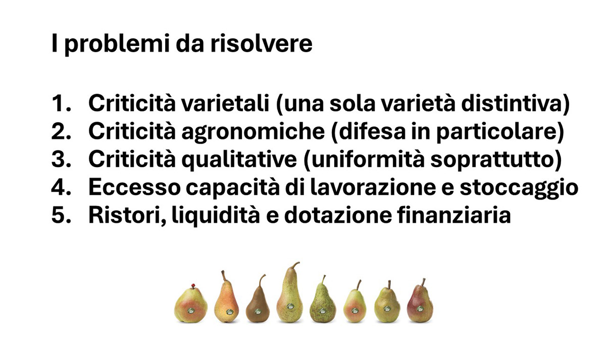 Ascoltando i relatori si comprende come oramai all’interno della compagine di UNAPera ci sia un’unità di intenti e di collaborazione per certi versi superiore alle aspettative, soprattutto a livello commerciale, che poteva - invece - essere un terreno di scontro non indifferente. La maggior parte degli sforzi, infatti, si sta concentrando nel riportare le rese a dei livelli accettabili.