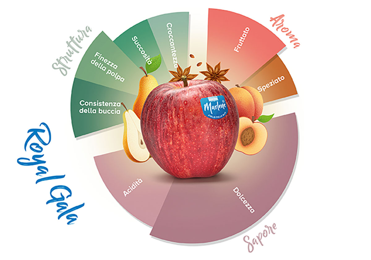 Con l’evoluzione della ruota degli aromi, sarà incentrata sull’unione di origine, stagioni e gusto la nuova campagna 2023-2024 delle mele Marlene®, che hanno iniziato la commercializzazione con la varietà Gala.