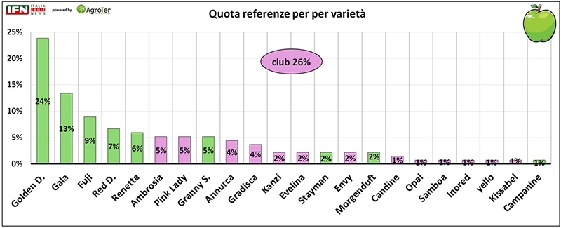 Varietà: Golden e Gala restano centrali, ma avanzano le club
