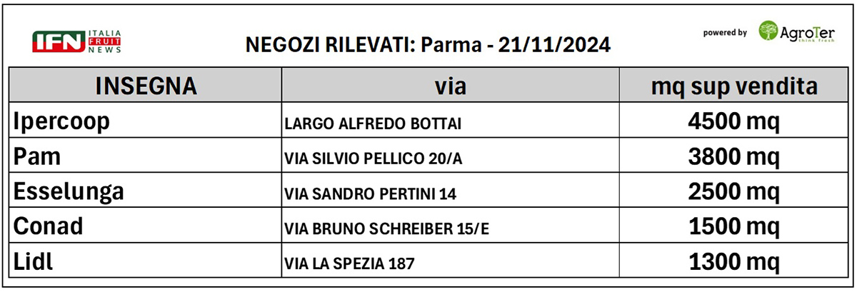 Per questo motivo, IFN ha realizzato un approfondimento con rilevazioni sul campo, condotte in cinque negozi appartenenti a diverse insegne nella piazza di Parma.