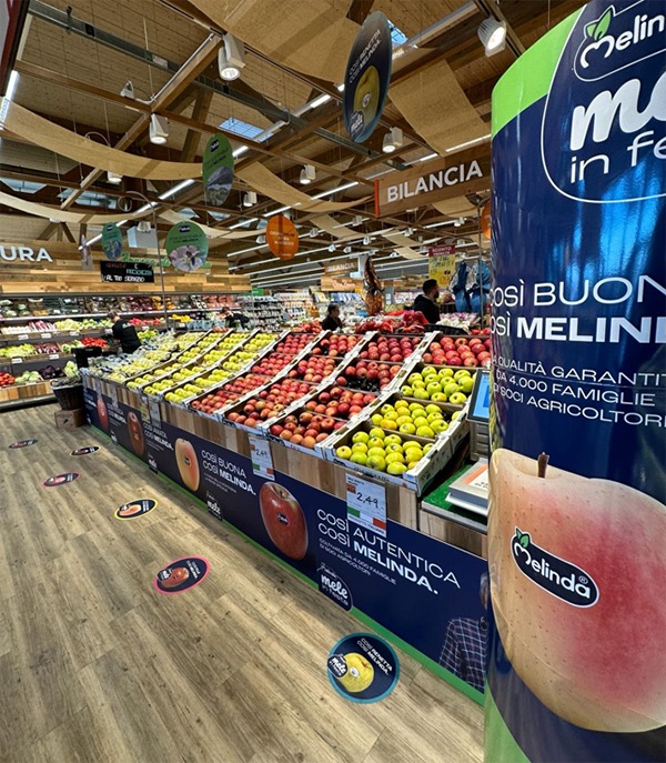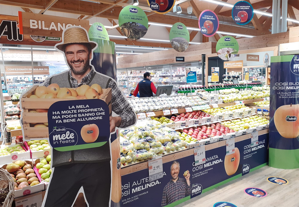 Un ampio stand per raccontare le mele, le iniziative e i valori di un consorzio che fa della cooperazione e del legame con il territorio i propri elementi di forza. È qui, nel cuore di oltre 1.000 punti vendita, che trovano spazio i prodotti di Melinda, protagonisti in questi mesi di “Mele in festa”, una grande operazione promozionale pensata per la grande distribuzione organizzata.