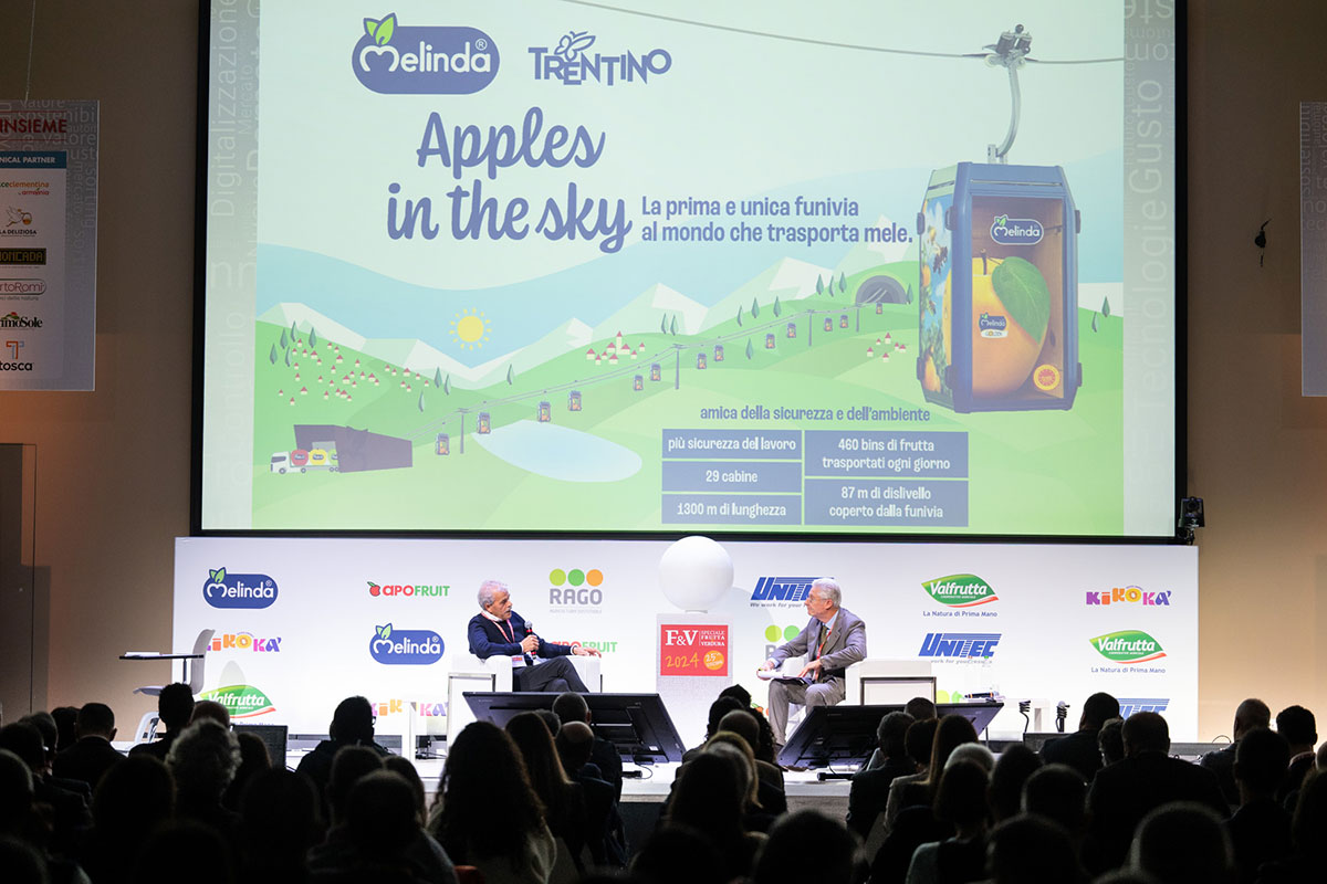 “La funivia delle mele e la relativa conservazione nelle celle ipogee sono innovazioni che sposano la sostenibilità, aspetto centrale nel mondo di oggi. L’utilizzo delle celle ipogee, situate nelle grotte, permette un risparmio del 30% in energia elettrica e il trasporto con la funivia permette di ridurre l’utilizzo dei mezzi su ruote, con un impatto positivo sulle emissioni”, ha sottolineato Magnani.