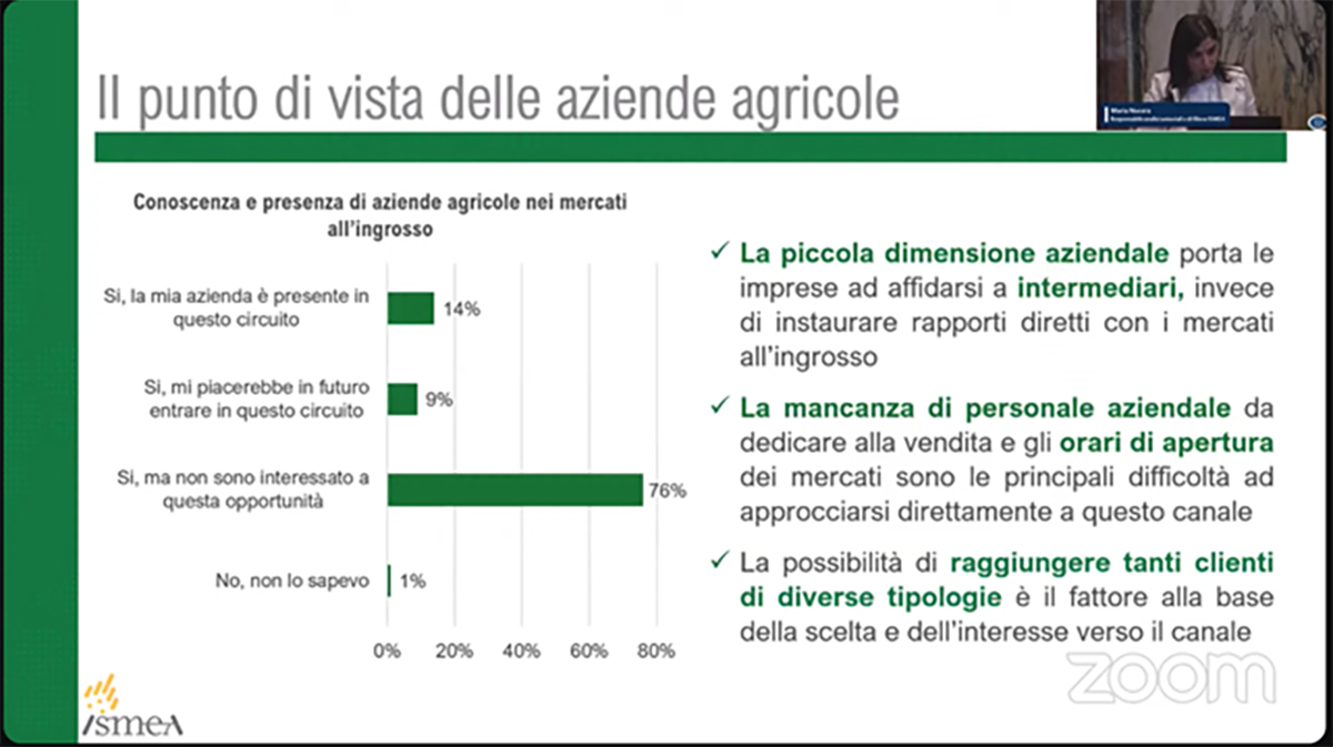 Su questo tema ci giunge in soccorso anche la ricerca sviluppata da Italmercati in collaborazione con Ismea, presentata recentemente al Cnel di Roma, dove, fra i diversi temi, si è chiesto a un panel di produttori se fossero a conoscenza della possibilità di vendere i propri prodotti all’interno di un mercato ortofrutticolo. Chiaramente, l’intero campione ne è a conoscenza e, una parte, già vende in mercato; è però certo di rilievo comprendere le motivazioni di coloro che non sono interessati ad approcciare questo canale.