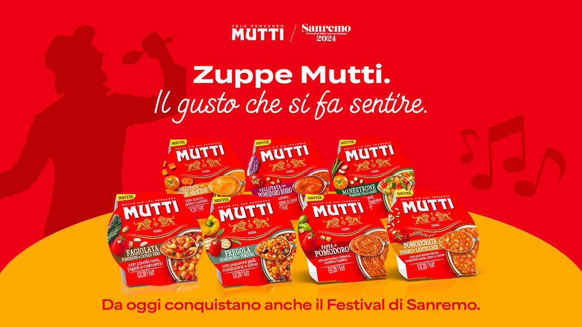 Mutti, azienda di Parma leader in Europa nel mercato dei derivati del pomodoro è, per la prima volta, partner del Festival di Sanremo, lasciandosi ispirare dalla vocazione internazionale della kermesse, che ha fatto dell’italianità il suo punto di forza. Nel segno della valorizzazione del Made in Italy, la partnership si concretizza in un’ampia attività di comunicazione volta a valorizzare le nuove Zuppe fresche Mutti: genuine, realizzate con pomodoro 100% italiano.
