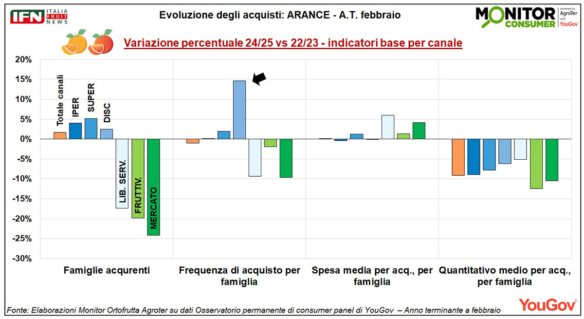 Indicatori per canale: schizza la frequenza di acquisto per le arance nel discount