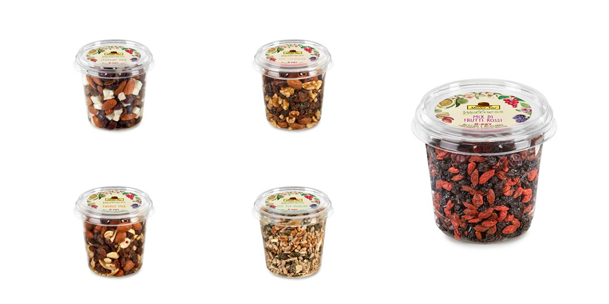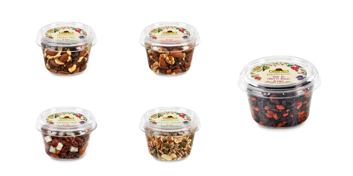 Dopo aver lanciato lo scorso anno i nuovi bicchieri trasparenti in R-Pet (clicca qui per approfondire), New Factor continua ad investire sul packaging. L’azienda ha annunciato il restyling grafico della sua popolare linea di mix di frutta secca, disidratata e monogusto “Mister Nut Wellness”.