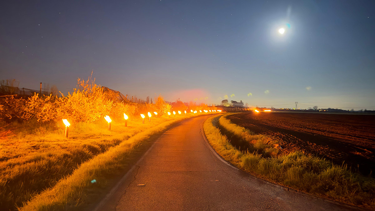 Memori delle difficoltà degli ultimi anni, i frutticoltori del Nord Italia si sono fatti trovare pronti, attivando tutti i sistemi di difesa disponibili: irrigazione antibrina (sopra e sotto chioma), ventoloni (fissi e mobili), chiusura delle reti antigrandine e l’uso di candele riscaldanti. In alcune aree rurali, il rumore delle ventole in azione ha addirittura spinto alcuni cittadini a segnalare la possibile presenza di elicotteri, segno del livello di mobilitazione degli agricoltori per proteggere le colture.