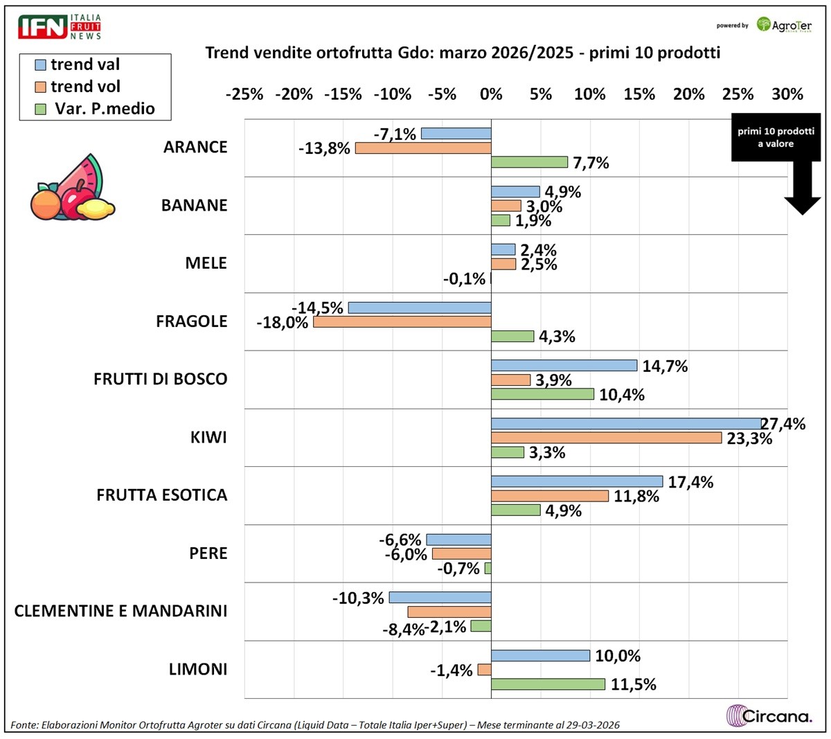 Ortofrutta in Gdo, a marzo calano i volumi ma cresce la IV-V Gamma