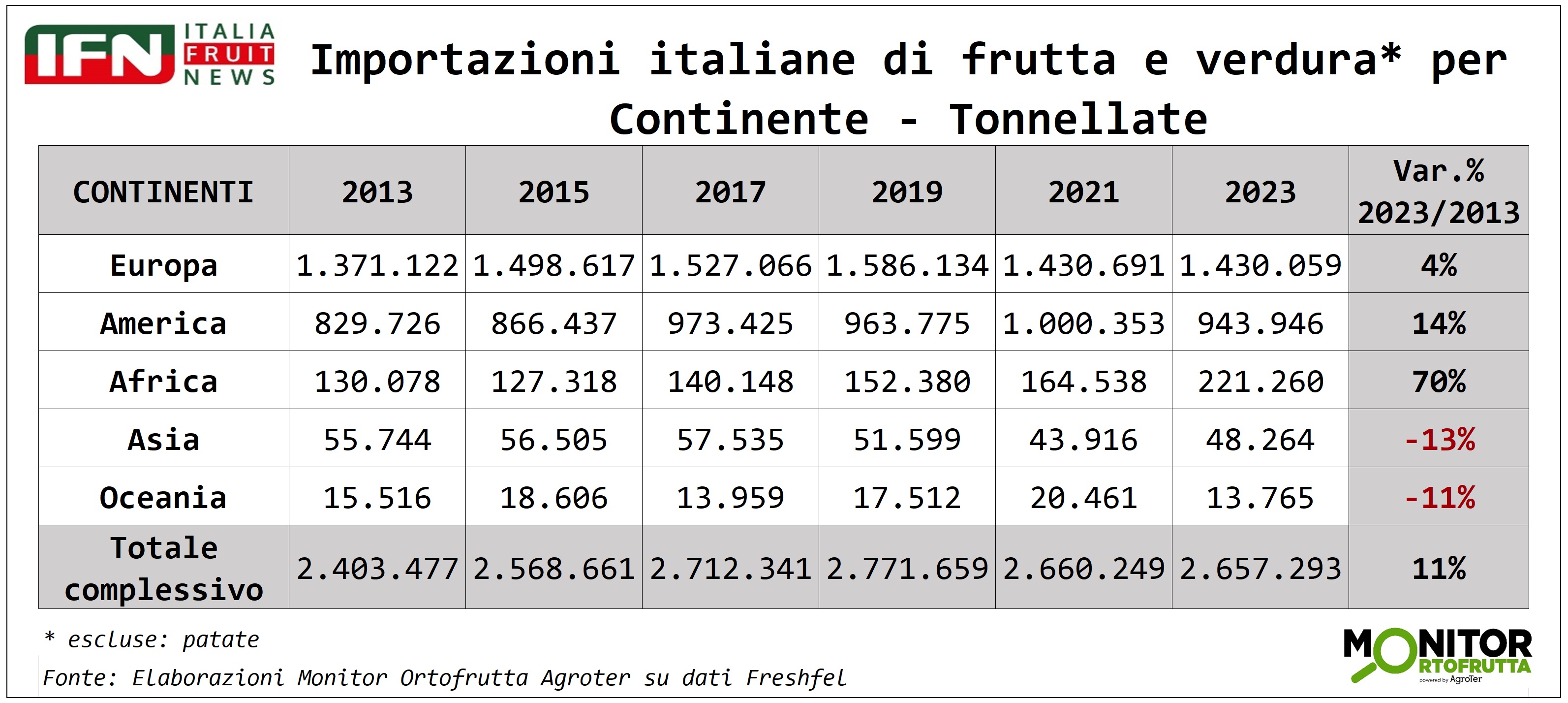 Francia e Germania registrano un calo, ma l’assenza dei dati sulle patate, uno dei prodotti di punta nelle esportazioni verso l’Italia, rende prematuro trarre conclusioni definitive.