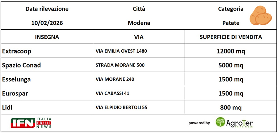 Il peso della categoria patate nel reparto ortofrutta richiede un’analisi approfondita delle dinamiche che influenzano i risultati economici. L’osservazione delle prestazioni in vendita nei supermercati nel corso del tempo rappresenta una fotografia essenziale per comprendere le prospettive di evoluzione del comparto. Anche quest’anno, Italiafruit News propone quindi un’analisi basata sulla rilevazione effettuata negli stessi cinque punti vendita visitati a febbraio 2025, a parità di periodo, nella piazza di Modena.