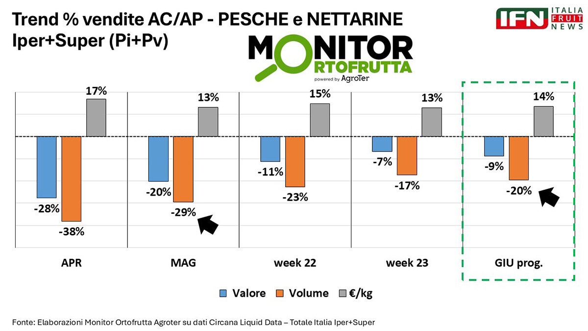 “Siamo sostanzialmente in linea con i dati presentati, anche se, per quanto riguarda le nettarine, tra maggio e giugno abbiamo avuto a disposizione buone linee di prodotto e siamo riusciti ad attivare promozioni efficaci, che hanno dato un impulso positivo alle vendite", ha spiegato Gelli. "Per il resto della categoria, ci allineiamo con l’andamento generale del mercato, caratterizzato da una partenza prudente ma con buone prospettive”.