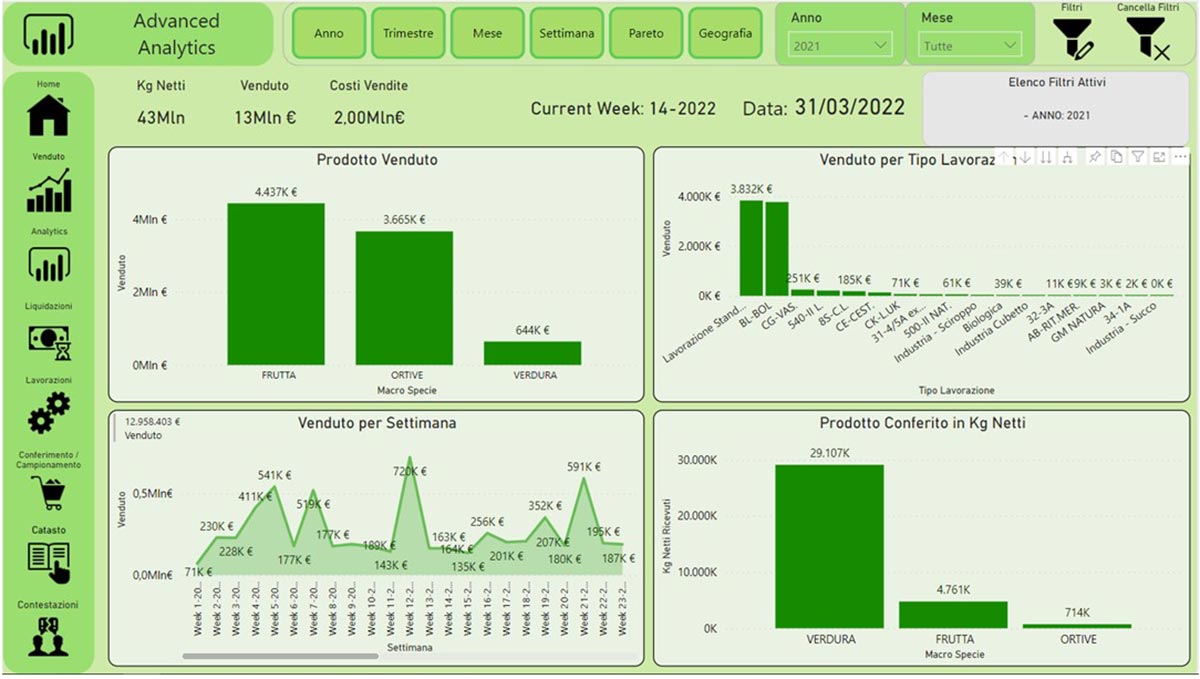 “Navgreen Reporting è pensata appositamente per il settore ortofrutticolo” - spiega Luca Gozzoli, Data Analyst di QGS – “grazie al sistema di business intelligence, aziende private, produttori, OP e confezionatori hanno a disposizione un vero e proprio centro di controllo aziendale accessibile dal proprio pc o smartphone”.