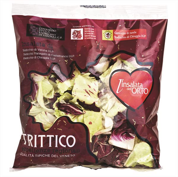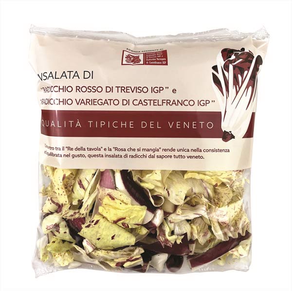Infatti, l'azienda di Mira (Venezia) ha una gamma ampia di referenze di IV Gamma che fa perno sulle eccellenze venete: Radicchio di Chioggia Igp, Radicchio Variegato di Castelfranco Igp, Radicchio di Verona Igp, Radicchio Variegato di Castelfranco Igp e Radicchio Rosso di Treviso Igp, Trittico di Radicchi Igp (Variegato di Castelfranco, Chioggia e Verona).