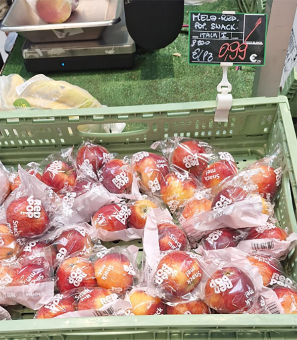 Più facile a dirsi che a farsi, e proprio durante una delle nostre rilevazioni periodiche presso i punti vendita della Gdo Italiana, abbiamo trovato in vendita una referenza al 100% snack: la mela RedPop®, varietà sviluppata dal CIV di Ferrara e prodotta da VOG, che ne gestisce la commercializzazione sia in Italia che all’estero.