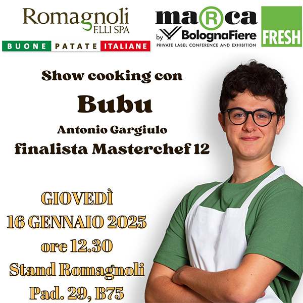In particolare, durante la seconda giornata, Romagnoli dalle 12,30 accoglierà nel proprio stand lo show cooking di Antonio Gargiulo, in arte “Bubu”, chef giovanissimo e talentuoso, molto amato dal pubblico della dodicesima edizione di Masterchef di cui è stato finalista. Nelle sue deliziose creazioni Bubu esalterà il gusto straordinario delle patate della varietà Melrose, commercializzate come èVita Armonia Gourmet Rosè.