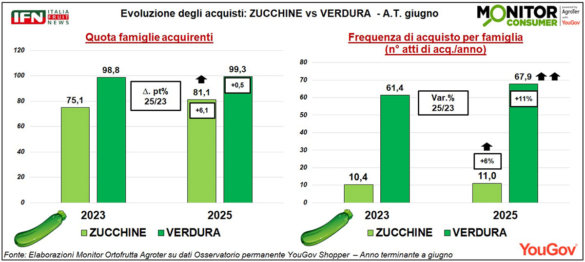 Nel consueto approfondimento realizzato da Italiafruit News in collaborazione con l’Osservatorio permanente YouGov Shopper, emerge come sempre più famiglie acquistino zucchine, con un apprezzamento particolarmente forte nel Nord-Est e tra i giovani.