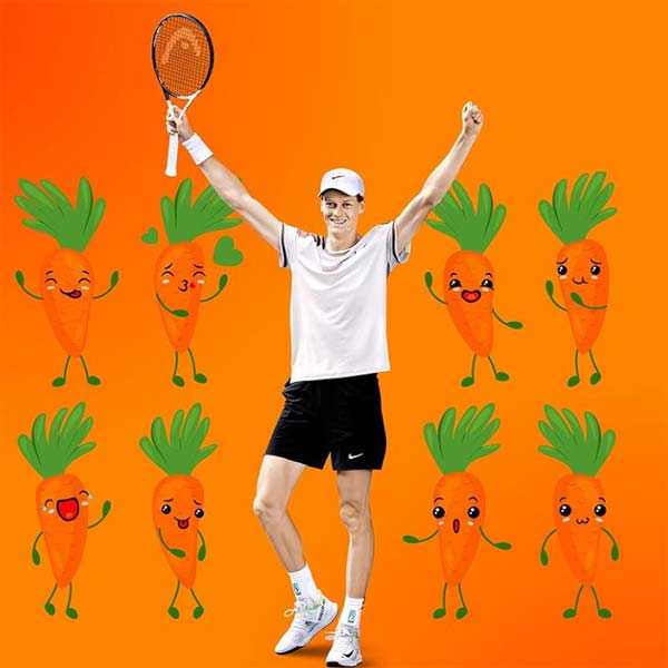 Jan, come lo chiamano i tifosi affezionati, ha conquistato l’Italia con la sua aria da anti-divo e da bravo ragazzo tutto allenamento e cuore. Ma il segreto del campione risiede anche nell’ortofrutta…soprattutto nelle carote, che non lasciano mai solo Sinner: ormai sono un binomio consolidato e vincente.
