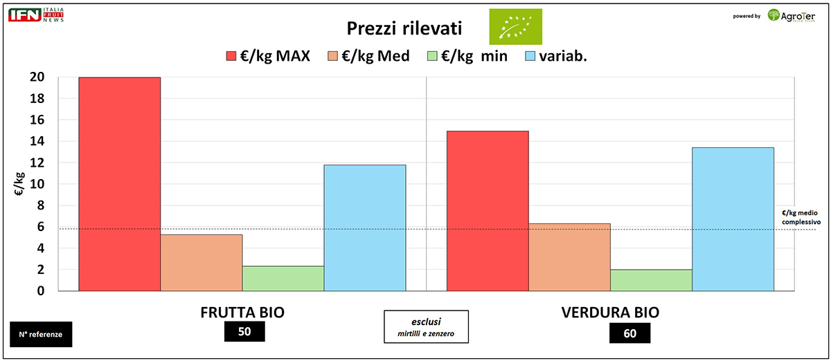 Chiudiamo con la consueta analisi dei prezzi, uno dei principali imputati sull’acquisto di ortofrutta biologica. La tecnica produttiva adottata nel bio comporta inevitabilmente un aumento del prezzo al chilo rispetto al prodotto convenzionale. Tuttavia, questi aspetti tecnici non sempre sono chiari ai responsabili acquisto, e ciò può compromettere la percezione di valore del prodotto, soprattutto quando il gusto non rappresenta un elemento distintivo.