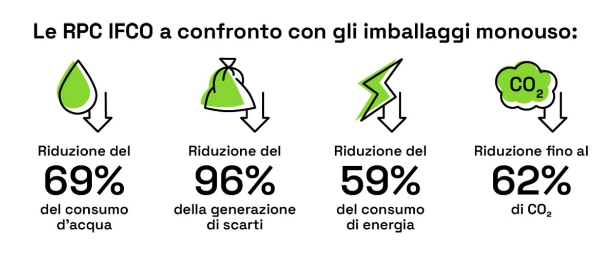 Lo studio ha confermato che, prendendo in esame l’intero ciclo di vita degli imballaggi monouso e delle RPC IFCO, queste ultime vantano un’impronta di carbonio nettamente inferiore e consentono quindi di tutelare le risorse naturali. I risultati riflettono l’impegno pluriennale di IFCO nel migliorare costantemente la propria efficienza, incrementando i vantaggi ambientali del proprio modello circolare di pooling. Infatti, attraverso lo SmartCycle e il modello a economia circolare su cui questo si basa, IFCO aiuta tutti i suoi partner a rendere più sostenibile la loro supply chain dei generi alimentari freschi.