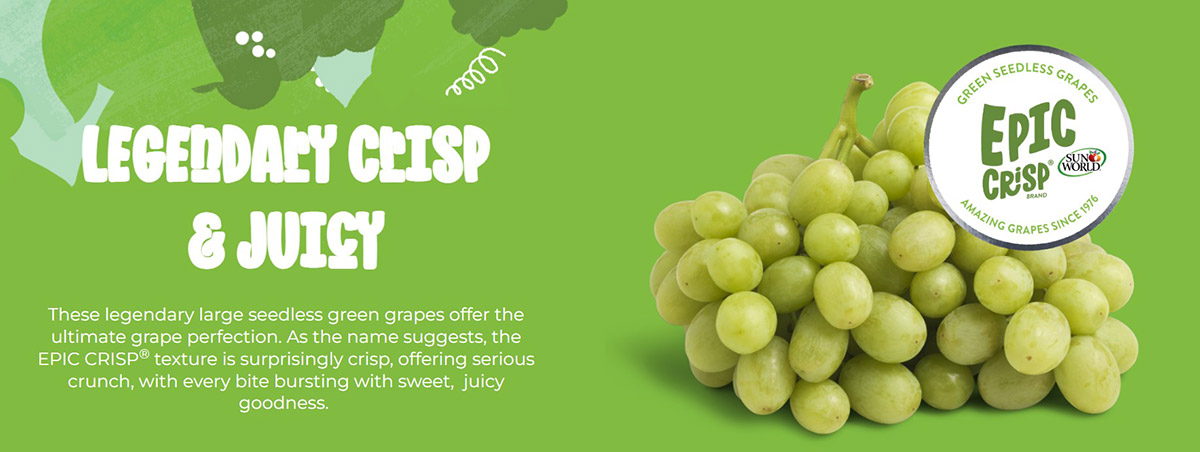 La varietà Sugrafiftysix, commercializzata con il brand Epic Crisp, è una varietà verde senza semi di mezza stagione, caratterizzata da un morso croccante e da un succo dolce.