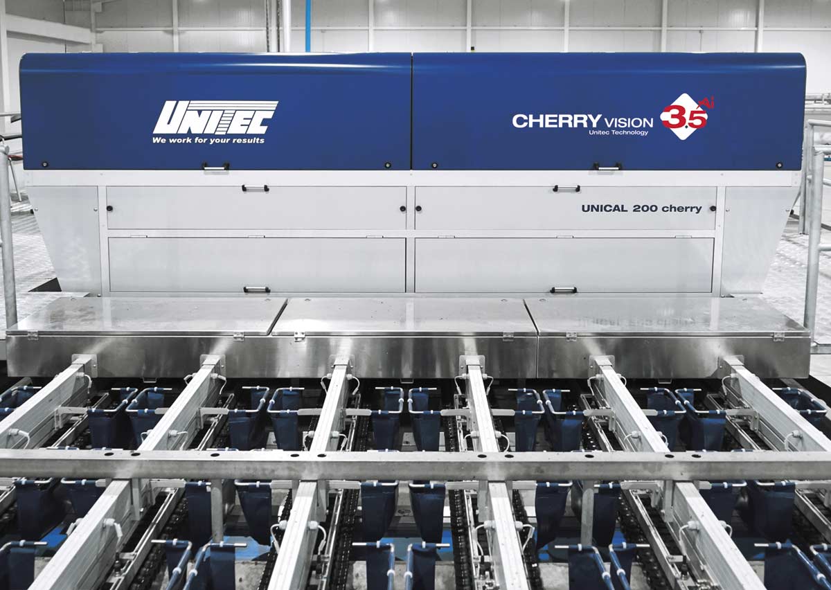 - individuare con affidabilità i frutti morbidi grazie all’inclusione della tecnologia UNI AI SOFT - rilevare con altissima precisione i difetti esterni in frutti senza picciolo e in frutti con linea di sutura marcata - calibrare con precisione ogni ciliegia in caso di frutti con una forma irregolare e non rotondeggiante e con la presenza di fiori. Un evidente esempio di come UNITEC innovi sia per trovare nuove soluzioni, ma anche per migliorare costantemente le tecnologie esistenti.