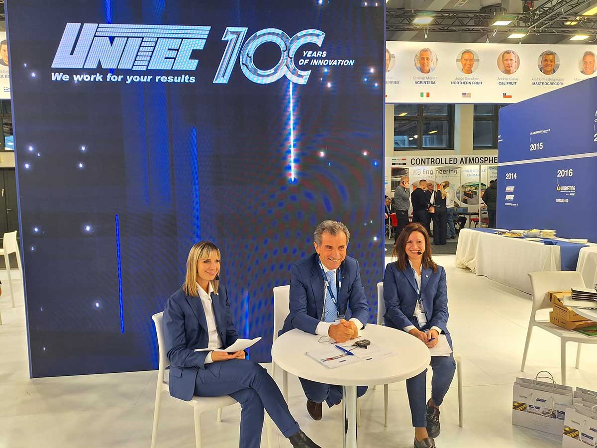 A Fruit Logistica il Gruppo UNITEC non presenta solo le sue ultime soluzioni per il settore, ma celebra 100 di ricerca e sperimentazione senza sosta in forte connessione con il mercato: “La nostra missione è stare a fianco dei nostri clienti – spiega il Presidente Angelo Benedetti – per dare loro risposte concrete e affidabili in tutti i progetti, che siano di crescita e sviluppo o del raggiungimento di nuovi mercati.”