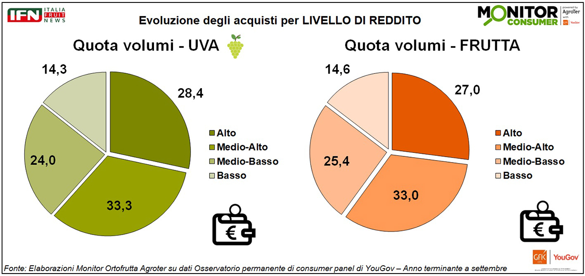 Quota a volume per fascia di reddito: chi guadagna di più predilige l’uva