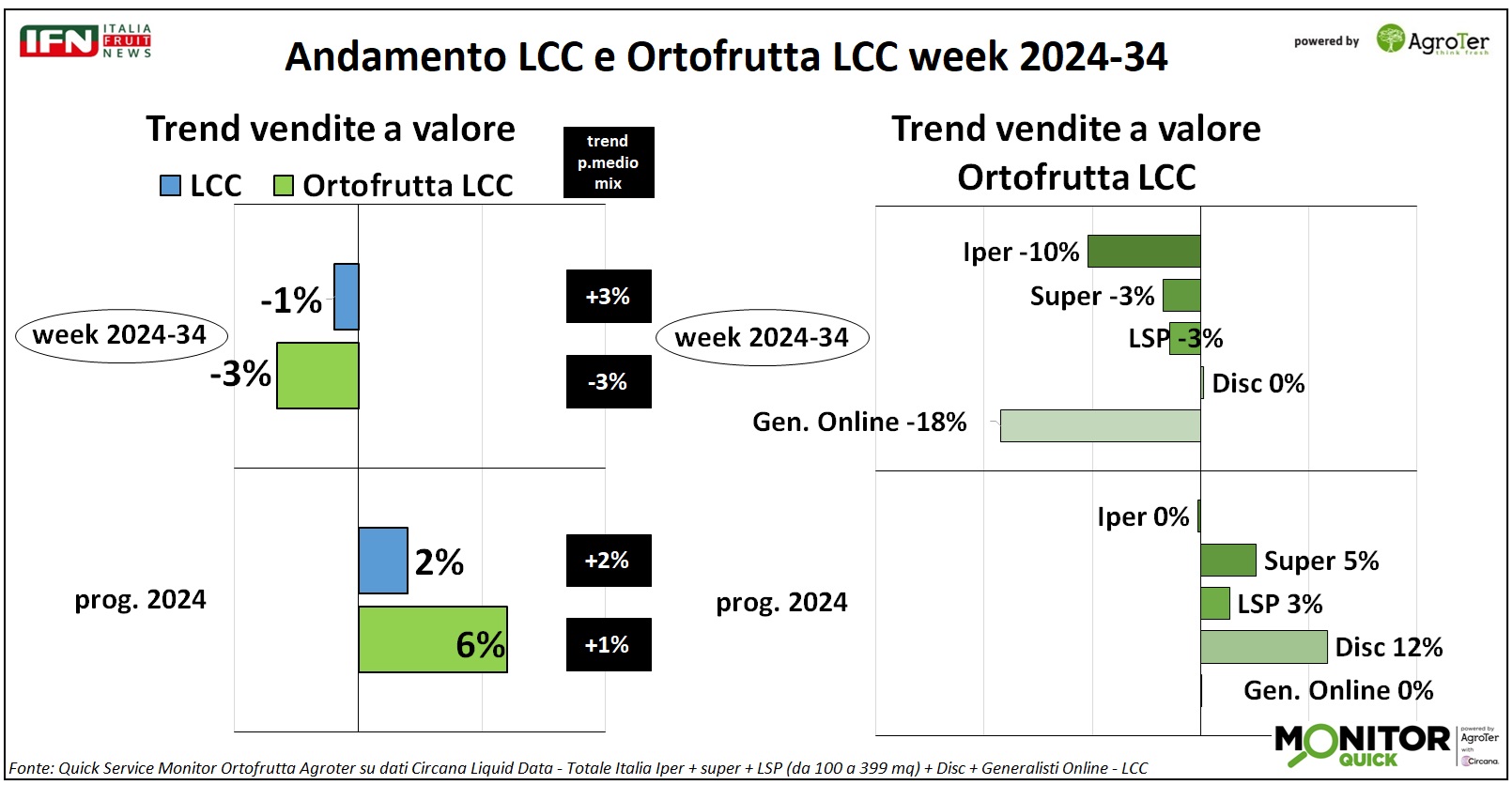 Week 34 anomala: battuta di arresto per l’ortofrutta LCC