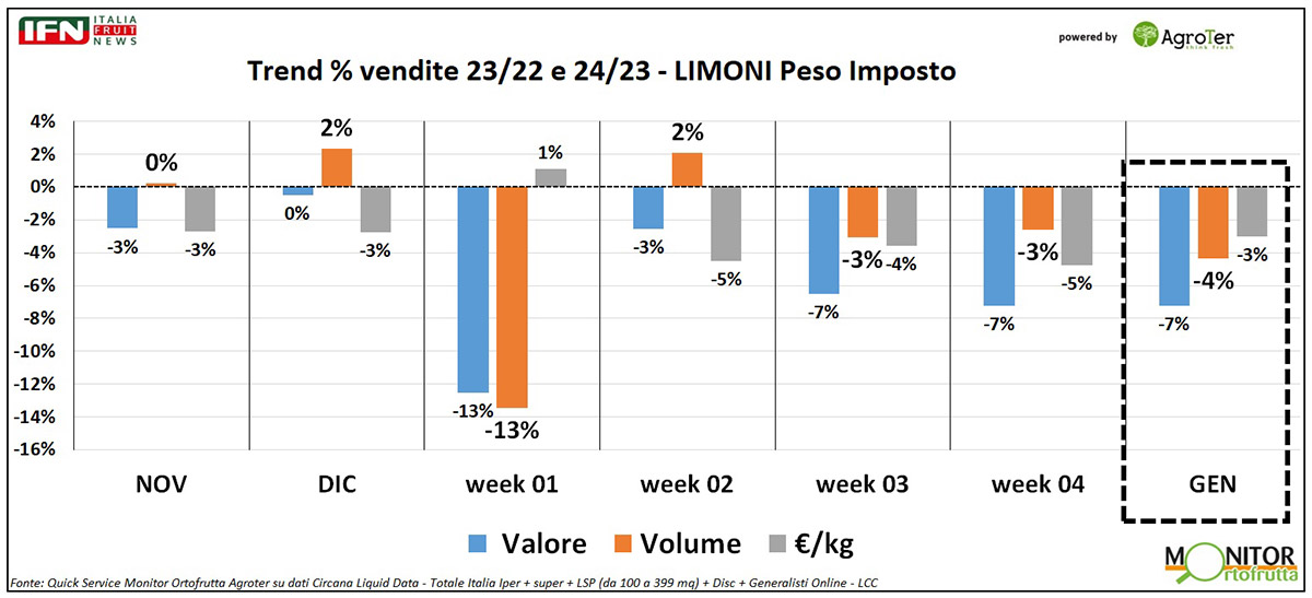 Questa settimana ci concentriamo su una categoria che, dopo l’emergenza Covid, ha cominciato a perdere colpi anno su anno, in modo quasi inesorabile. Stiamo parlando dei limoni (clicca qui per approfondire).