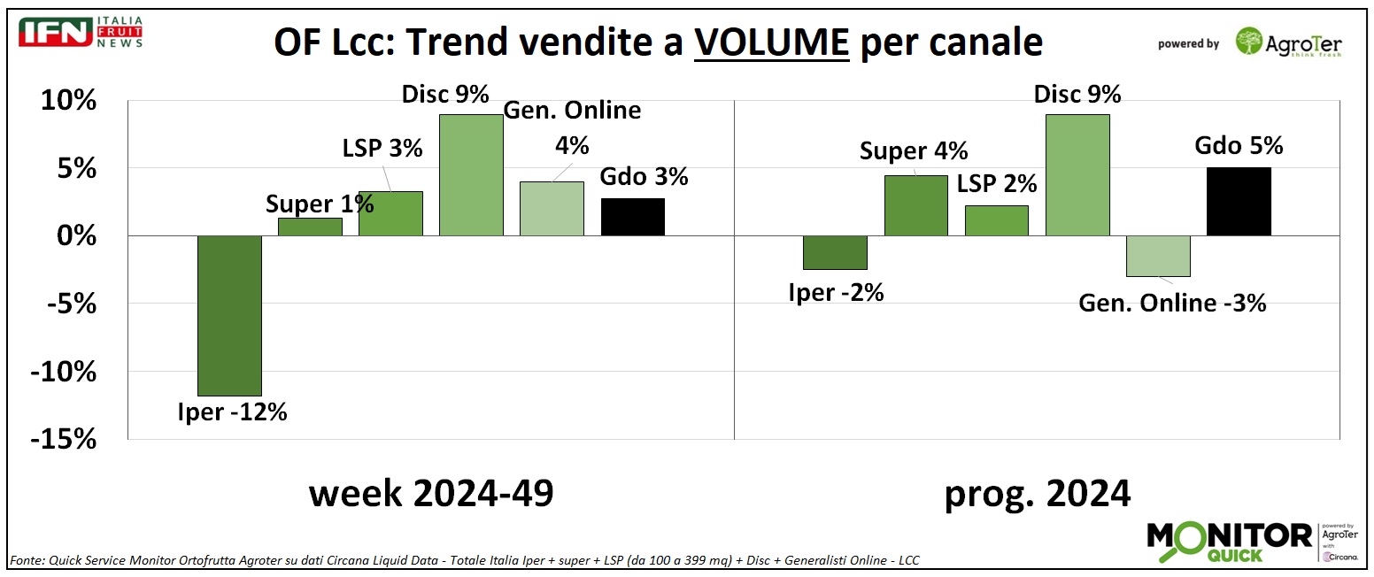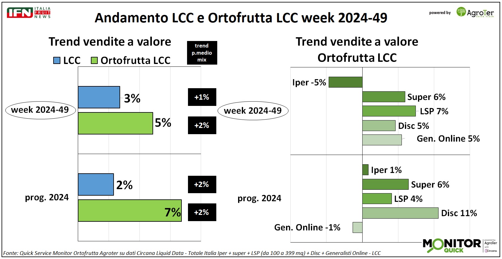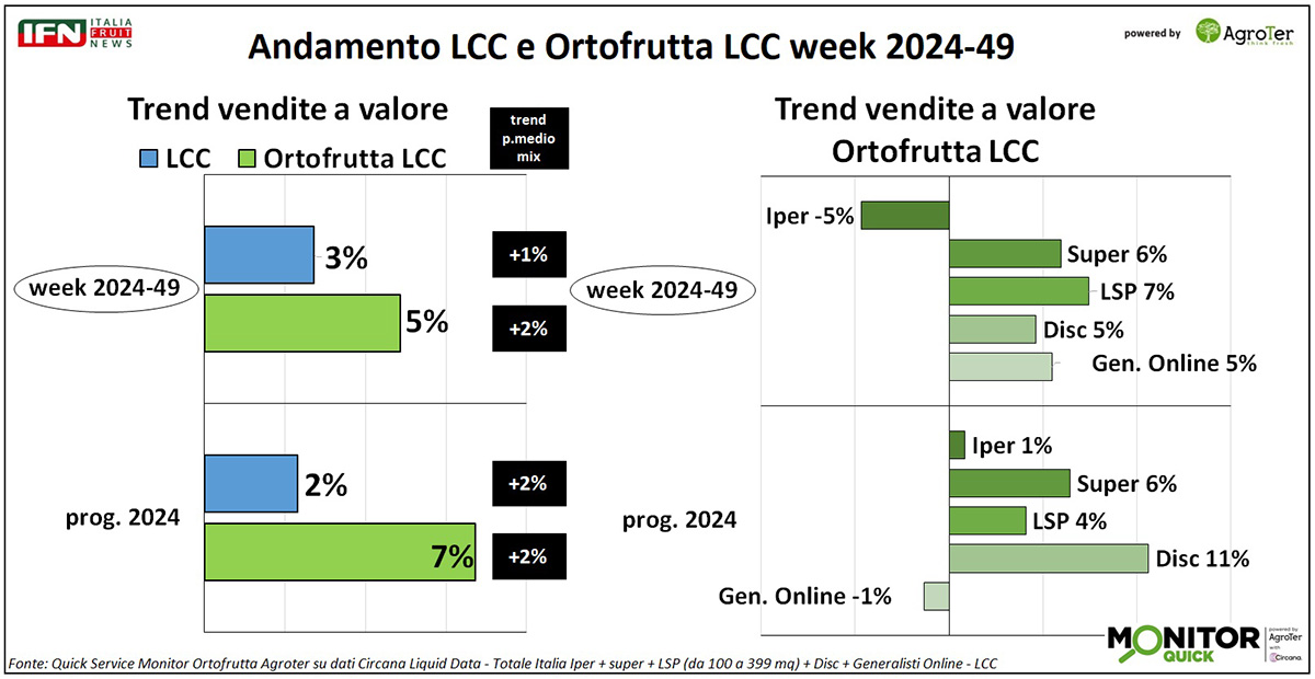 Week 49: l’ortofrutta LCC ritorna a crescere e si ridimensiona l’effetto inflattivo