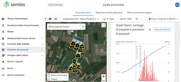 “Grazie ai sistemi di Semios, riusciamo a capire quando iniziare a trattare contro la carpocapsa e la batteriosi, le principali avversità del noce – spiega a IFN – e lo facciamo grazie ai sistemi di monitoraggio e alle fototrappole che abbiamo installato sui nostri terreni”.