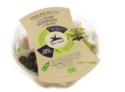 Le insalate in ciotola Alce Nero sono 100% biologiche, con insalate italiane, arricchitori ad alto valore nutrizionale e condimenti di qualità (olio extravergine di oliva bio dei soci olivicoltori di Alce Nero e aceto balsamico di Modena Igp “2 foglie”). Nelle confezioni, dotate di forchetta e tovagliolo, si trovano insalata con soia edamame e olive nere, insalata con Parmigiano Reggiano e noci e, infine, insalata con mix di semi, cranberries e pomodori datterini.