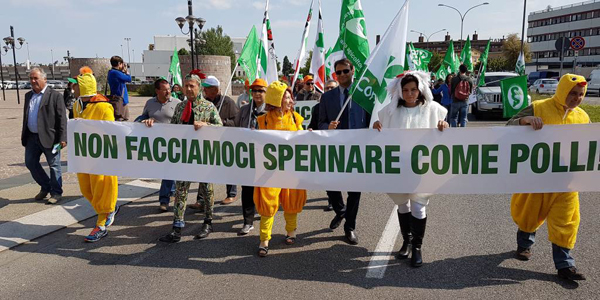 "Vogliamo produrre cibo di qualità e non carte in quantità". E ancora: "Non facciamoci spennare come polli" e "Agricoltori zero euro", "Le vacche non mangiano chiacchiere". Con cartelli come questi migliaia di agricoltori sono scesi in piazza per sottolineare lo stallo istituzionale e ottenere interventi per fronteggiare le emergenze del settore. Hanno aderito alla manifestazione anche gli agricoltori di Alpaa, Uci, Ugc e Aic "armati" di bandiere e palloncini, per lanciare un grido d'allarme: dal 2000 a oggi hanno chiuso oltre 310 mila imprese del settore primario.